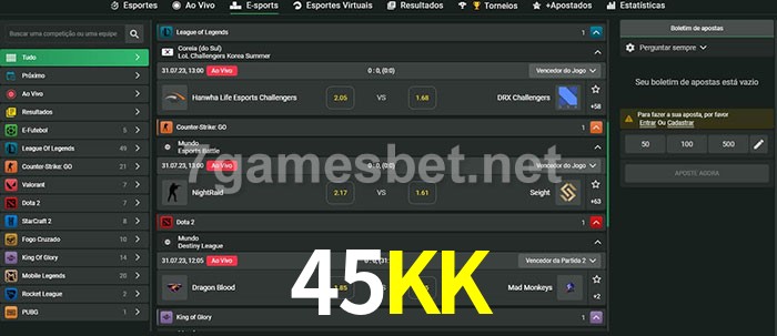 A aposta 45KK oferece aos jogadores a experiência mais conveniente de apostas em eSports!